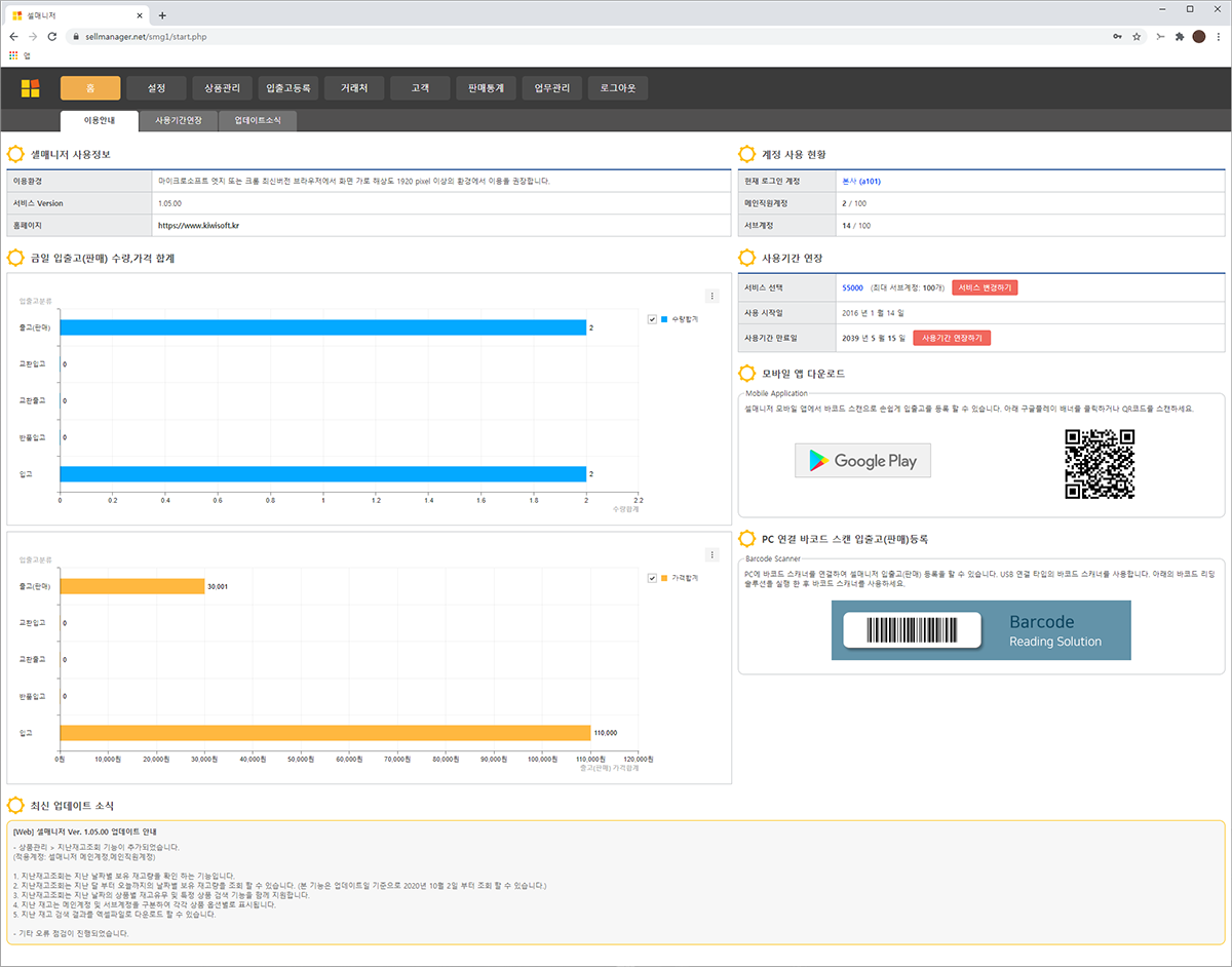 셀매니저 솔루션은 웹 기반에서 실행되기 때문에 웹 브라우저에서 접속하여 재고 및 판매관리를 할 수 있습니다.